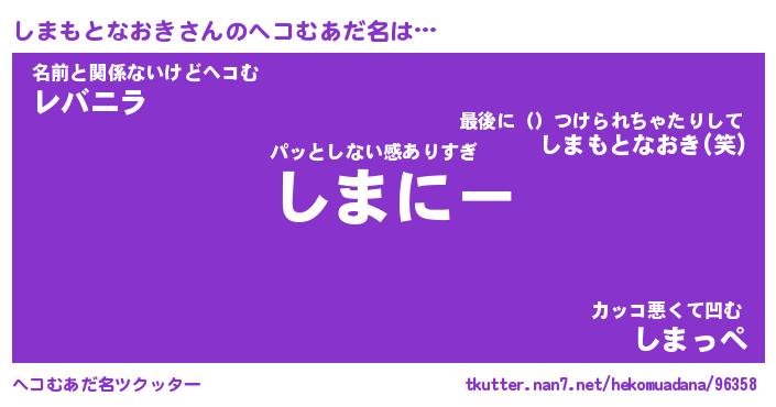 | 胡散臭い通販商品みたいなあだ名 | 『億万長者になれるブレスレット…その名も「しまもとなおき」』 |