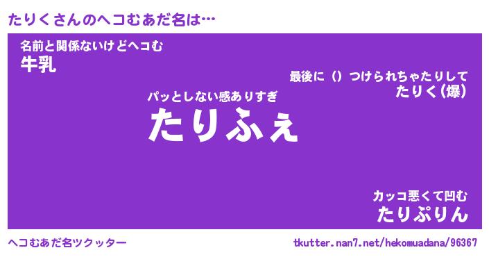 | ファンタジー風あだ名 | 『タリフェル』『エターナルタリクー』 |