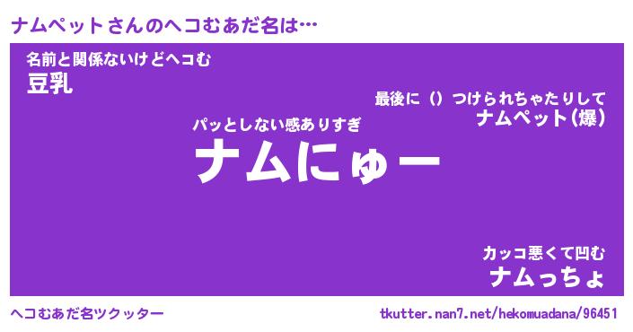 | ポケモン風あだ名 | 『ナムチュウ』『ナムペダネ』 |