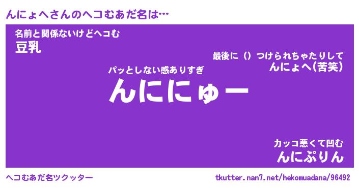 | ヒーロー風カッコイイあだ名 | 『スーパーンニョヘ』『天弓騎士ンニ』 |