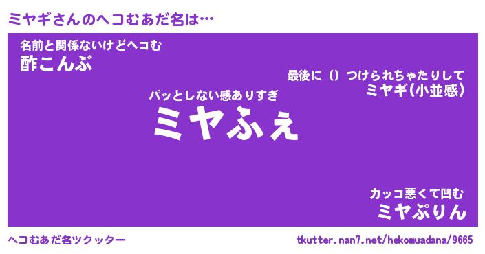 | ファンタジー風あだ名 | 『ミヤフェル』『エターナルミヤギー』 |