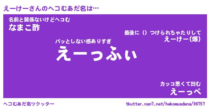 | ファンタジー風あだ名 | 『エーフェル』『エターナルエーケーー』 |