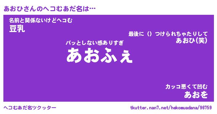 | 意味不明あだ名 | 『ペロリンあおひ』『あおひフォーエバー』 |