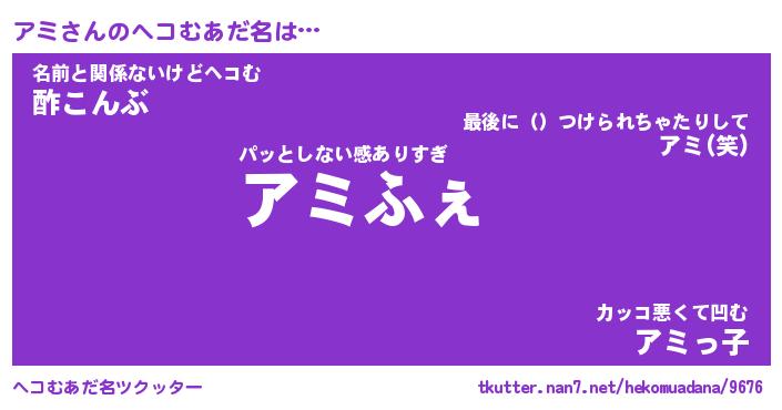 | 胡散臭い通販商品みたいなあだ名 | 『モテモテ間違いなし水晶球…その名も「アミ」』 |