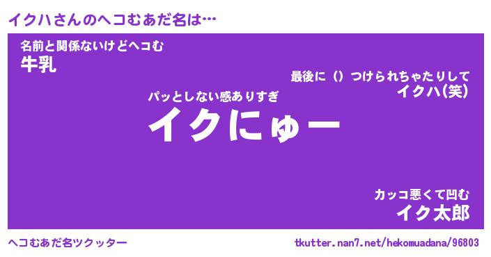 | 意味不明あだ名 | 『ペロリンイクハ』『イクハフォーエバー』 |