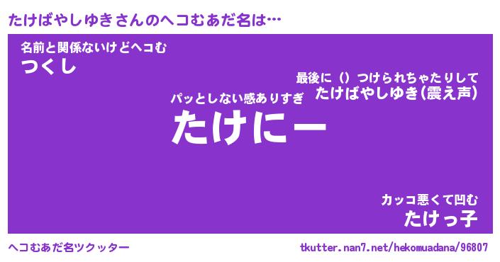 | 2回繰り返すあだ名 | 『たけたけ』『たたけけ』 |
