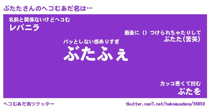 | 意味不明あだ名 | 『ペロリンぶたた』『ぶたたフォーエバー』 |