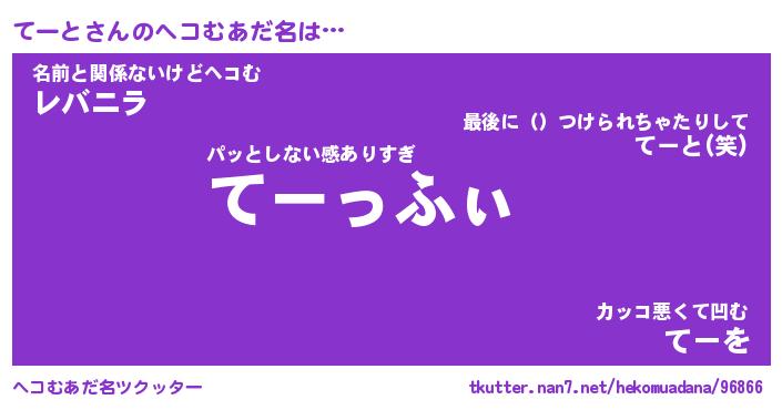 | ポケモン風あだ名 | 『テーチュウ』『テートダネ』 |