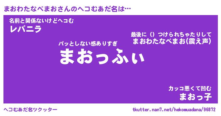 | 意味不明あだ名 | 『ペロリンまおわたなべまお』 |