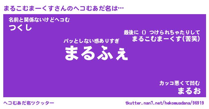 | 男性向けラノベタイトル風あだ名 | 『まるこむまーくすの憂鬱』 |