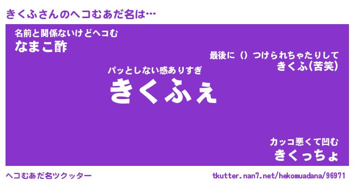 | 意味不明あだ名 | 『ペロリンきくふ』『きくふフォーエバー』 |