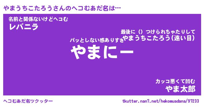 | 男性向けラノベタイトル風あだ名 | 『やまうちこたろうの憂鬱』 |