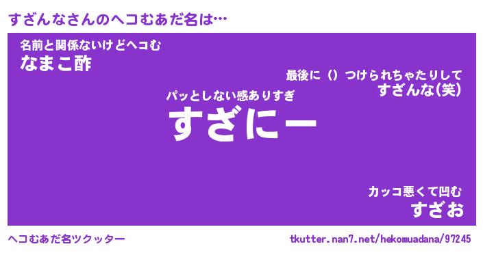| 意味不明あだ名 | 『ペロリンすざんな』『永久保存すざんな』 |