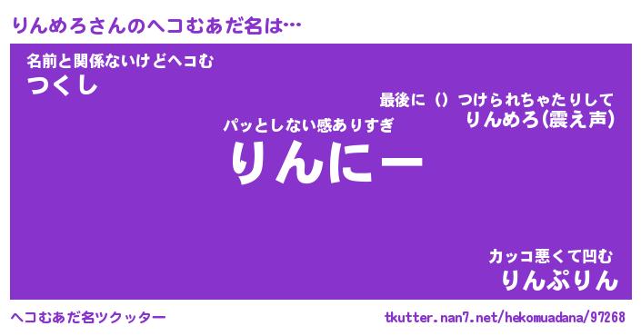 | 意味不明あだ名 | 『ペロリンりんめろ』『永久保存りんめろ』 |