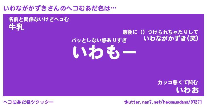 | 男性向けラノベタイトル風あだ名 | 『いわながかずきの憂鬱』 |