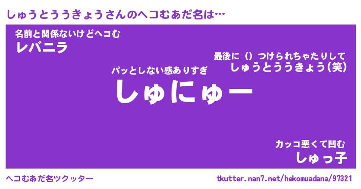 | 2回繰り返すあだ名 | 『しゅしゅ』『ししゅゅ』『いそいそ』 |