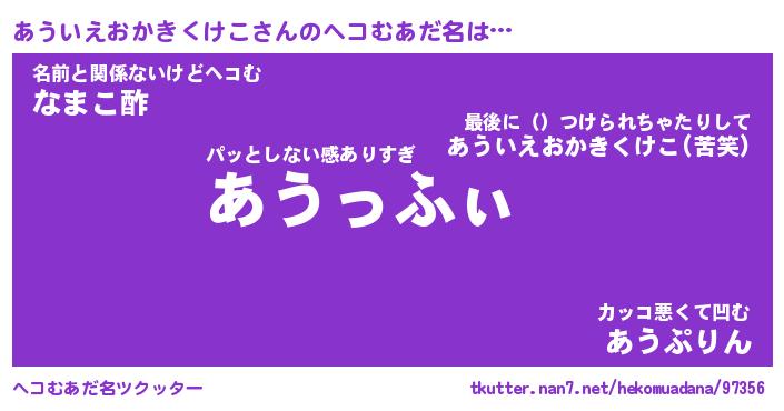 | 伝説のあだ名 | 『封印されしスナイパーあういえおかきくけこ』 |