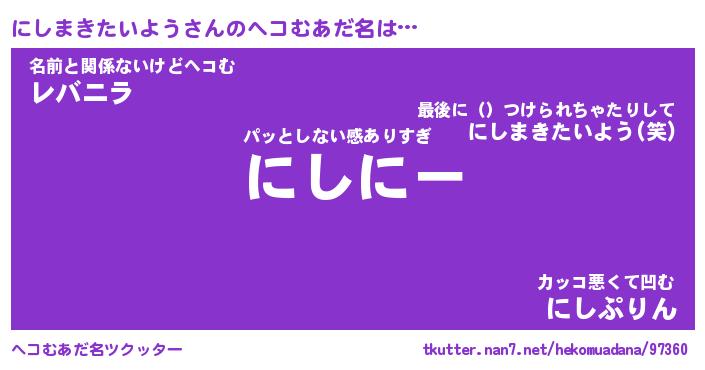 | 胡散臭い通販商品みたいなあだ名 | 『必ず成功するブレスレット…その名も「にしまきたいよう」』 |