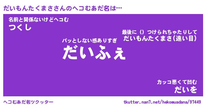 | 欧米人風あだ名 | 『マイケルだいもんたくまさ』 |