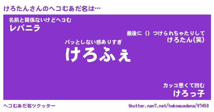 | 欧米人風あだ名 | 『マイケルけろたん』『ウサインけろたん』 |