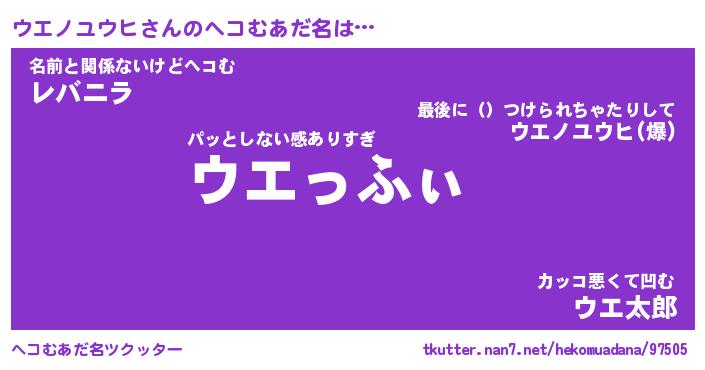 | 男性向けラノベタイトル風あだ名 | 『ウエノユウヒアートオンライン』 |