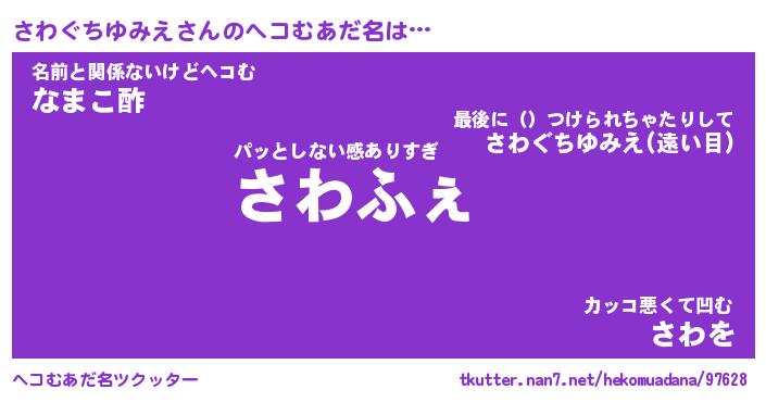 | 男性向けラノベタイトル風あだ名 | 『サワグチユミエアートオンライン』 |
