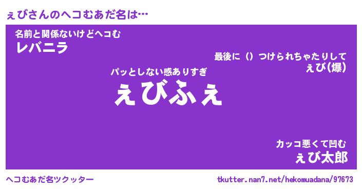 | ポケモン風あだ名 | 『ェビチュウ』『ェビダネ』『ヒェビ』 |