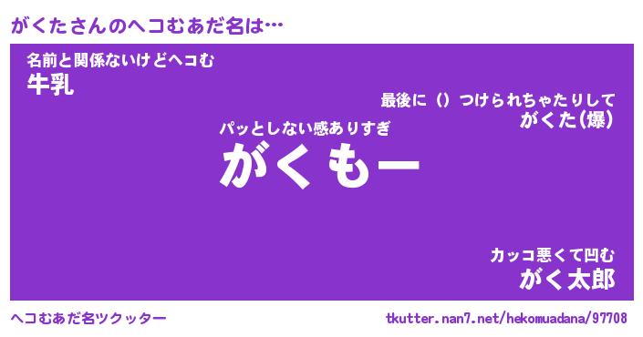 | 恥ずかしいあだ名 | 『プリティーがくた』『がくっちょ』 |