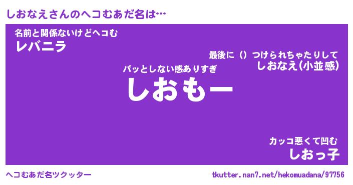 | 意味不明あだ名 | 『ペロリンしおなえ』『永久保存しおなえ』 |