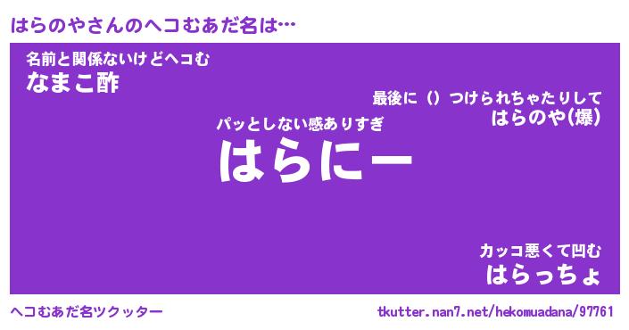 | 2回繰り返すあだ名 | 『はらはら』『ははらら』『あんあん』 |
