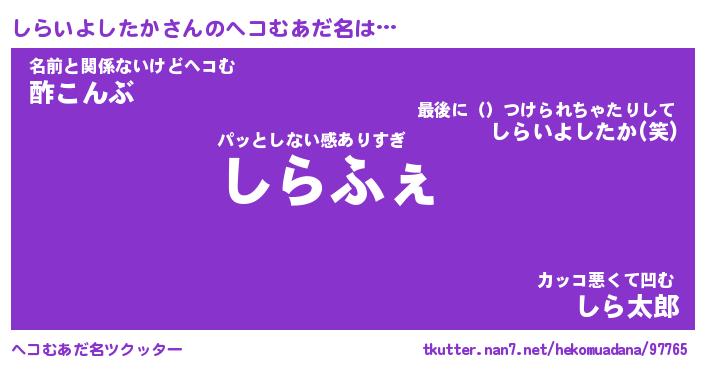 | 2回繰り返すあだ名 | 『しらしら』『ししらら』『ぬめぬめ』 |