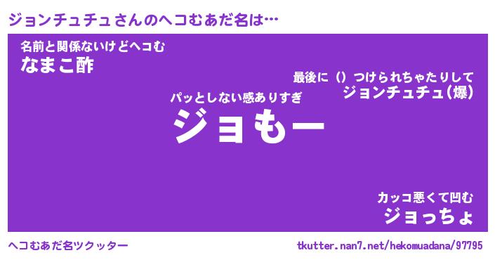 | ヒーロー風カッコイイあだ名 | 『スーパージョンチュチュ』 |