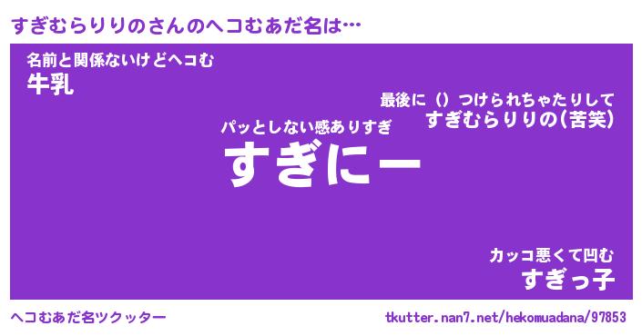 | 2回繰り返すあだ名 | 『すぎすぎ』『すすぎぎ』『ぬぷぬぷ』 |