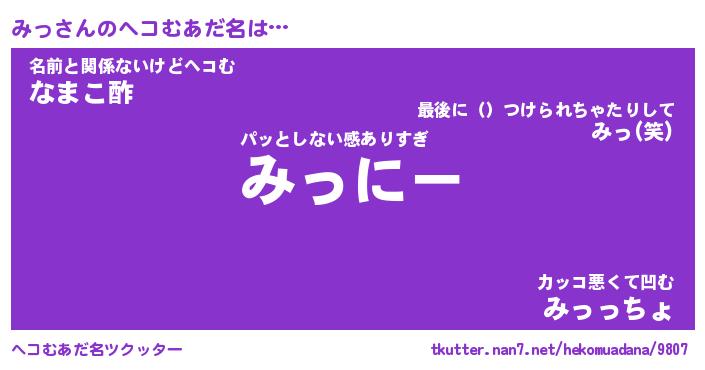 | ヒーロー風カッコイイあだ名 | 『スーパーミッ』『ウルトラみっマン』 |