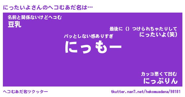 | 2回繰り返すあだ名 | 『にっにっ』『ににっっ』『ぬぷぬぷ』 |