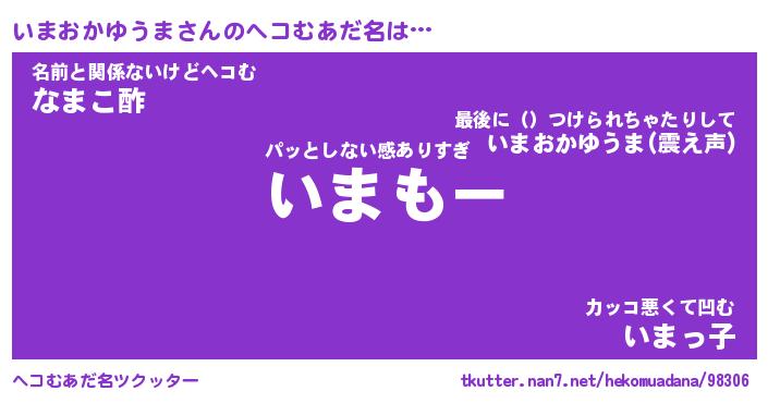 | ポケモン風あだ名 | 『イマチュウ』『イマオダネ』 |