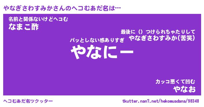 | 男性向けラノベタイトル風あだ名 | 『やなぎさわすみかの憂鬱』 |
