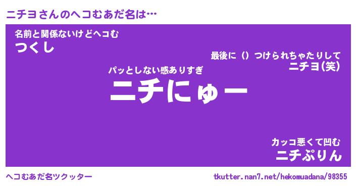 | ポケモン風あだ名 | 『ニチチュウ』『ニチヨダネ』 |