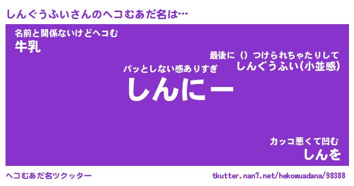 | 恥ずかしいあだ名 | 『プリティーしんぐうふい』『しんっちょ』 |