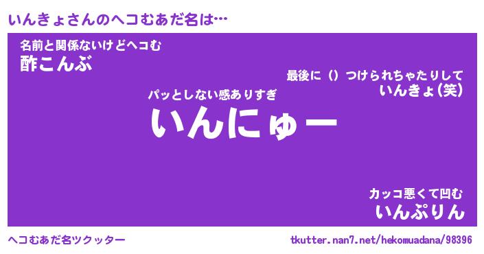 | 意味不明あだ名 | 『ペロリンいんきょ』『永久保存いんきょ』 |