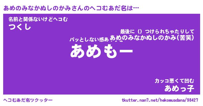 | 欧米人風あだ名 | 『マイケルあめのみなかぬしのかみ』 |