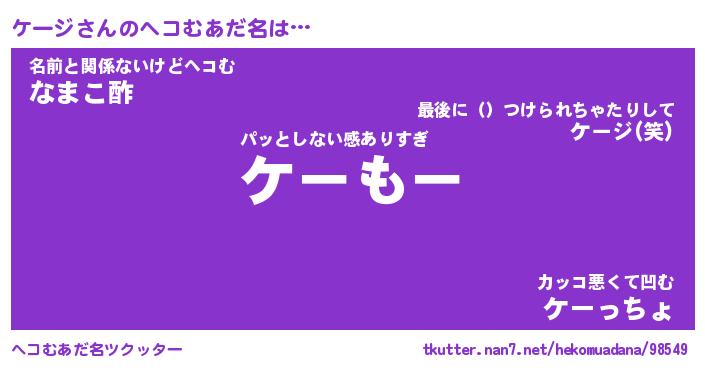 | ポケモン風あだ名 | 『ケーチュウ』『ケージダネ』 |