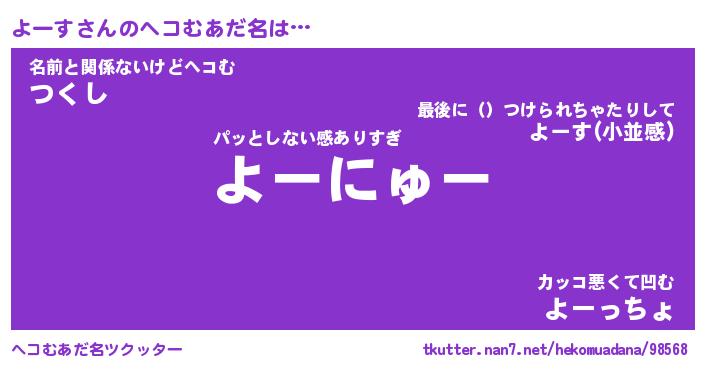 | 意味不明あだ名 | 『ペロリンよーす』『よーすフォーエバー』 |