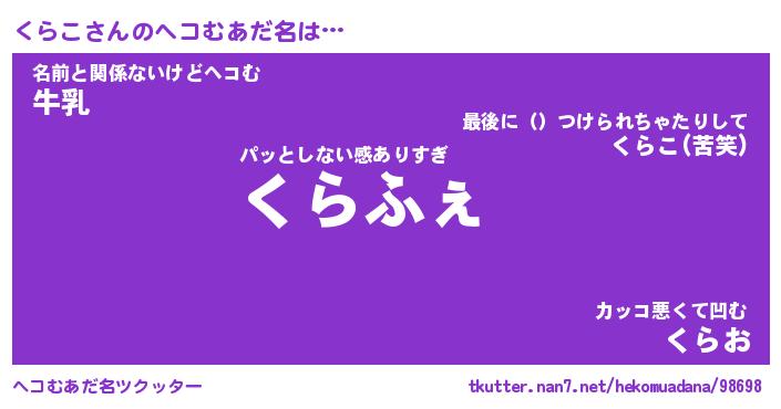 | 意味不明あだ名 | 『ペロリンくらこ』『くらこフォーエバー』 |