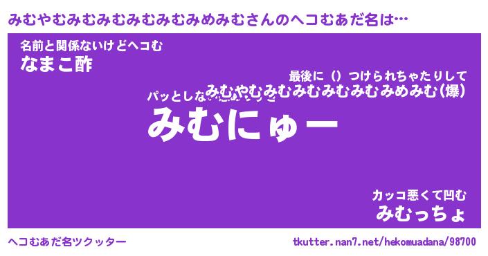 | ヒーロー風カッコイイあだ名 | 『スーパーミムヤムミムミムミムミムミメミム』 |