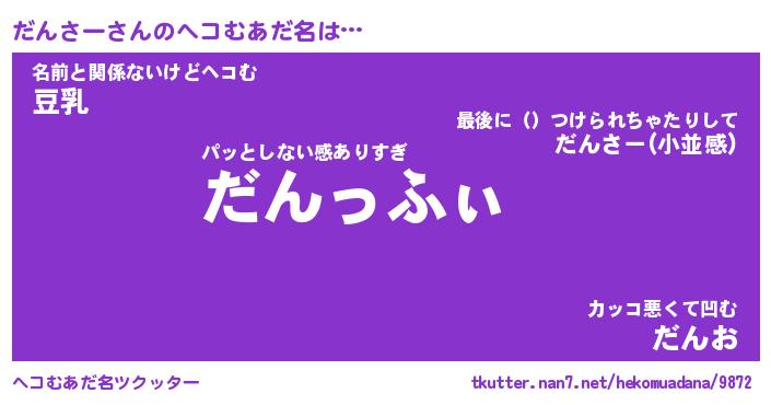 | 意味不明あだ名 | 『ペロリンだんさー』『永久保存だんさー』 |
