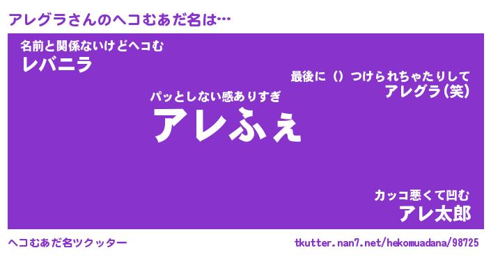 | ファンタジー風あだ名 | 『アレフェル』『エターナルアレグラー』 |