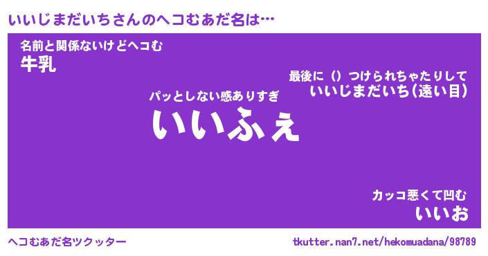 | ポケモン風あだ名 | 『イイチュウ』『イイジダネ』 |