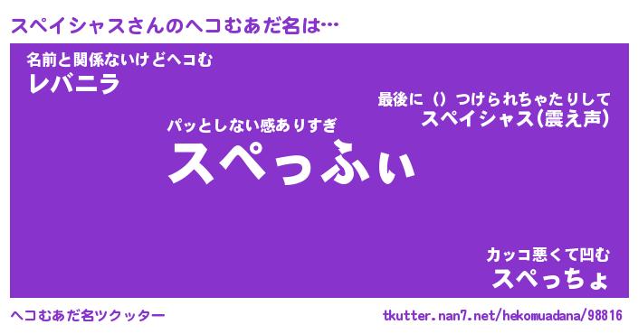 | ヒーロー風カッコイイあだ名 | 『スーパースペイシャス』『天弓騎士スペ』 |