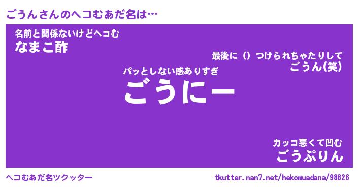 | ヒーロー風カッコイイあだ名 | 『スーパーゴウン』『ウルトラごうんマン』 |